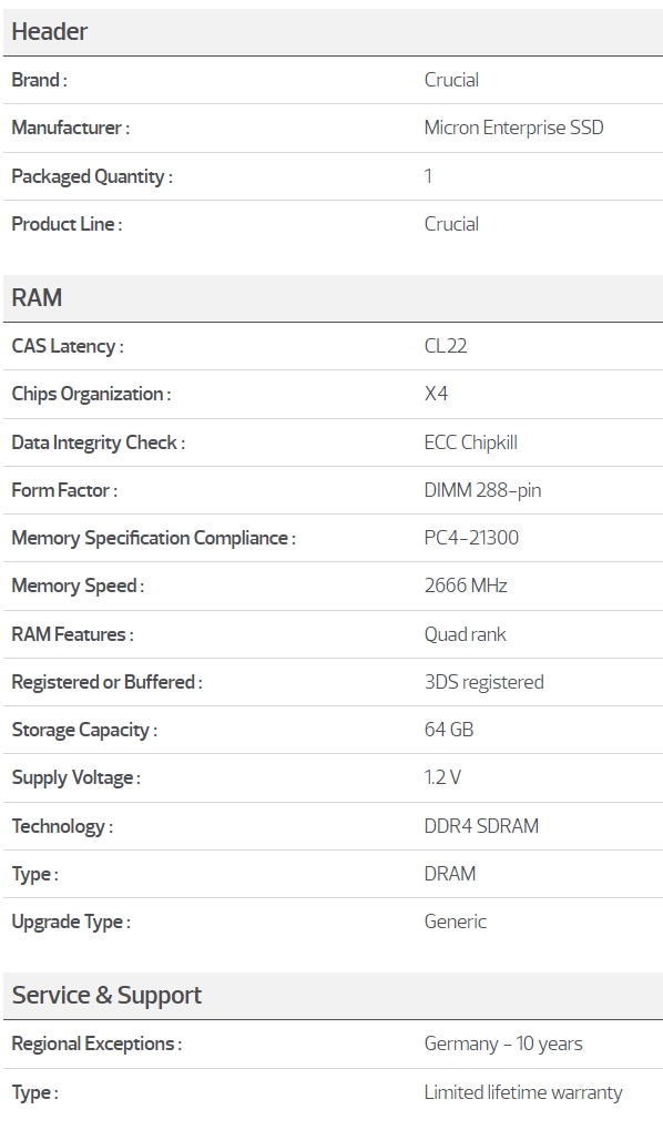 Crucial Ddr4 64Gb 2666Mhz (Pc-21300) Cl19 Qr X4 Registered Ecc Rdimm [Ct64G4Yfq426S] Ct64G4Yfq426S