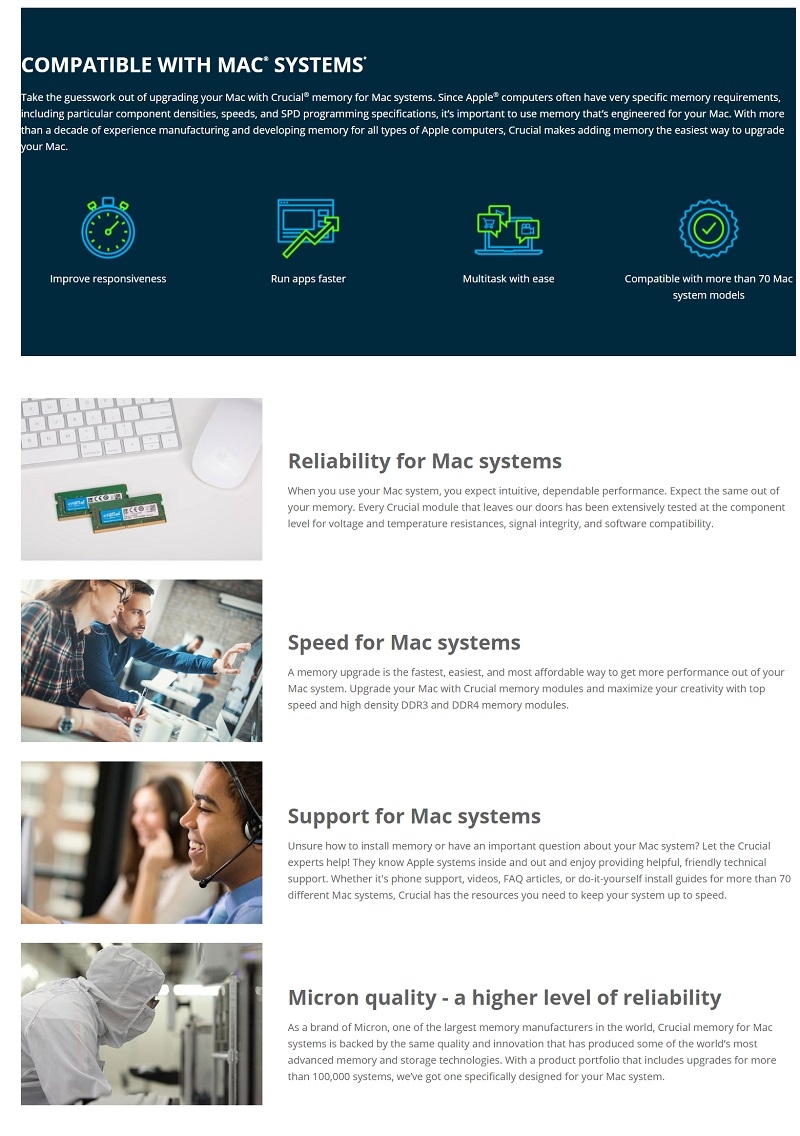 | Specs - DDR3 PC3-14900 • CL=13 • Unbuffered • NON-ECC • DDR3-1866 • 1.35v/1.5v (Dual Profile) • lead free • halogen free • for Mac |