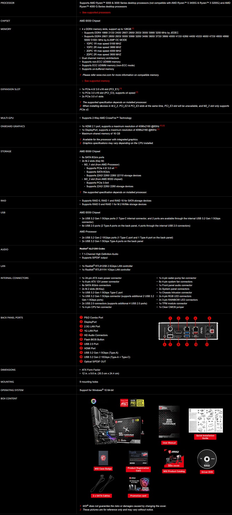| MPN: | MAG B550 TOMAHAWK Link |