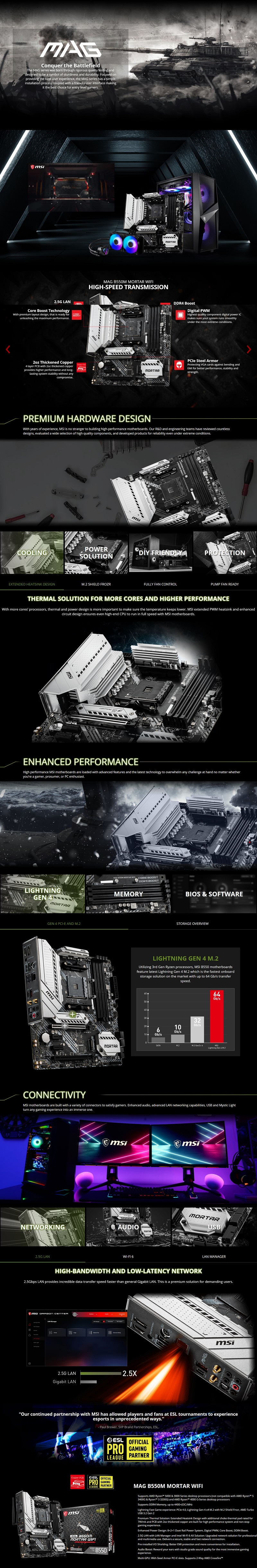 MSI MAG B550M MORTAR WIFI Motherboard B550 Micro-ATX: AM4 socket For 3rd Gen AMD Ryzen processors (MAG B550M MORTAR WIFI)