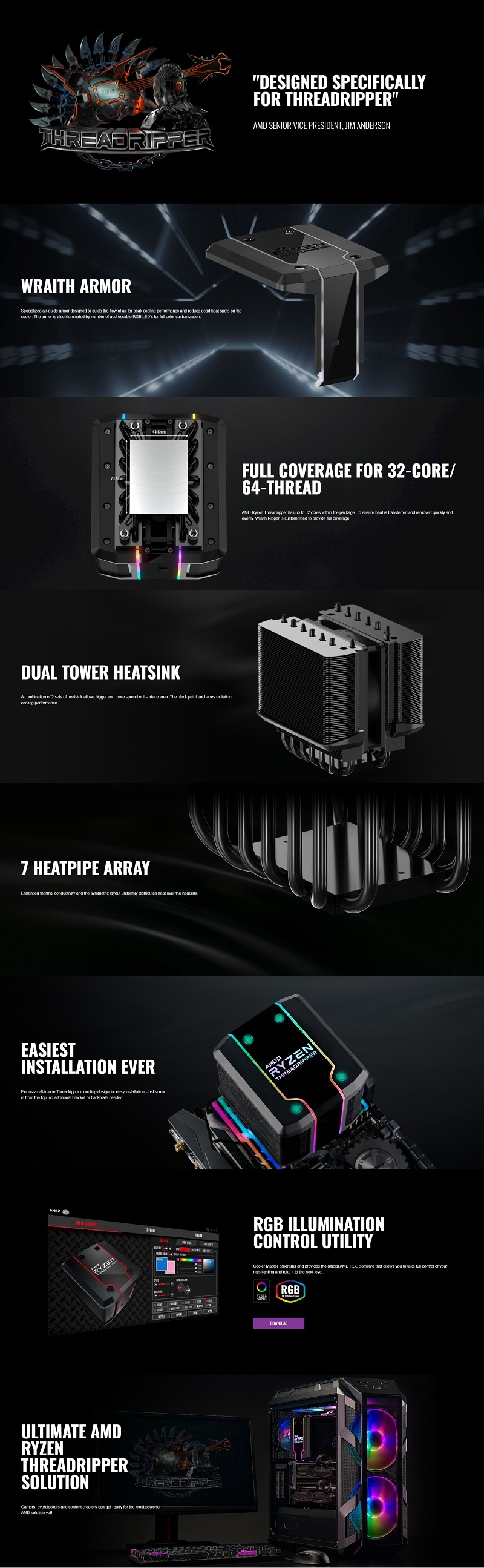 CPU Cooler: Wraith Ripper Addressable RGB (AMD TR4 Only), 7 Heat Pipes, Customizable Addressable RGB LED lighting, Wraith Ripper RGB software included