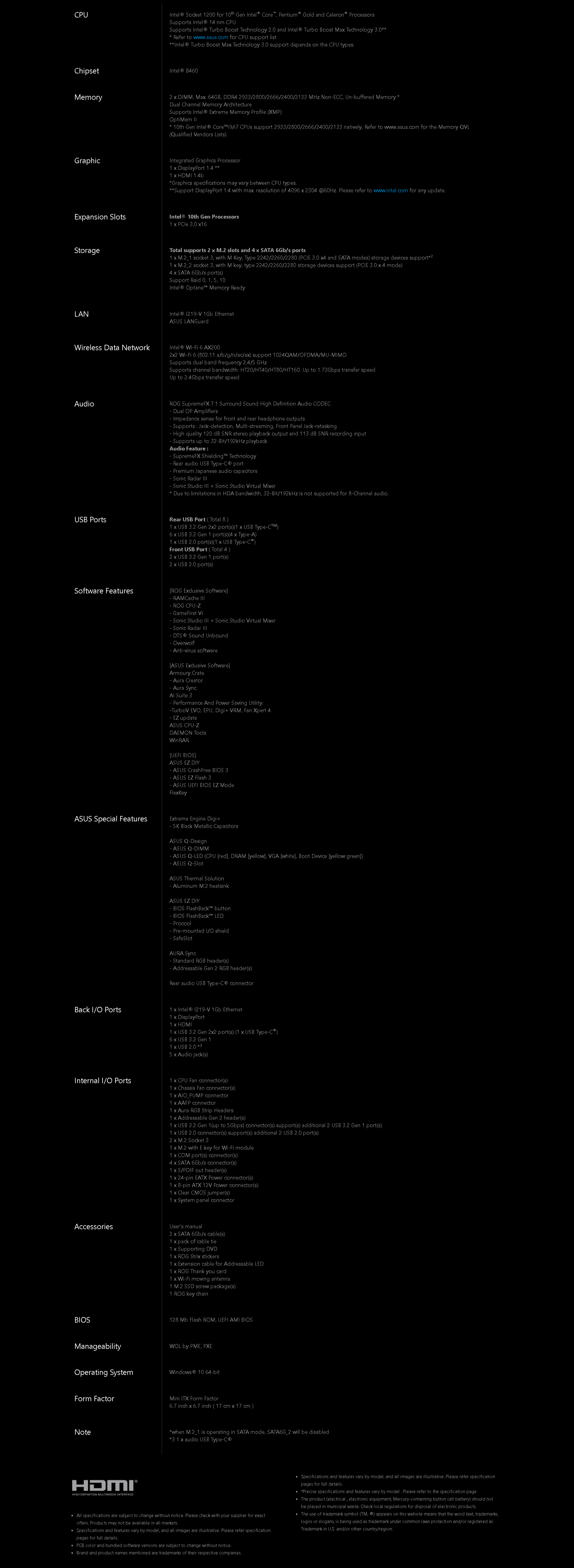 | MPN: | ROG STRIX B460-I GAMING Link |