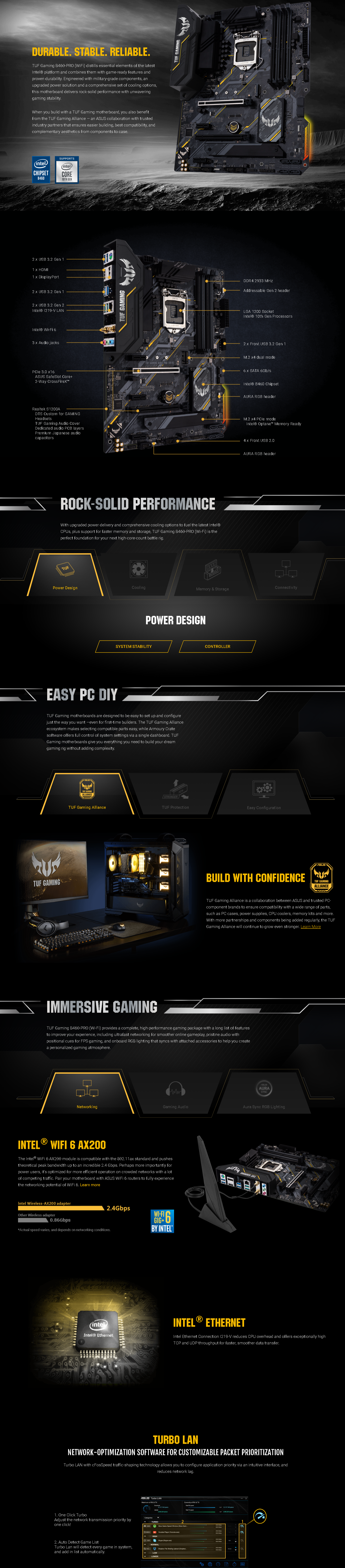ASUS TUF GAMING B460-PRO (WI-FI) ATX Gaming Motherboard 10th Gen LGA1200 DDR4 2933MHz, WIFI6, 2xM.2, DP, HDMI, CrossFire, Aura Sync RGB TUF GAMING B460-PRO (WI-FI)