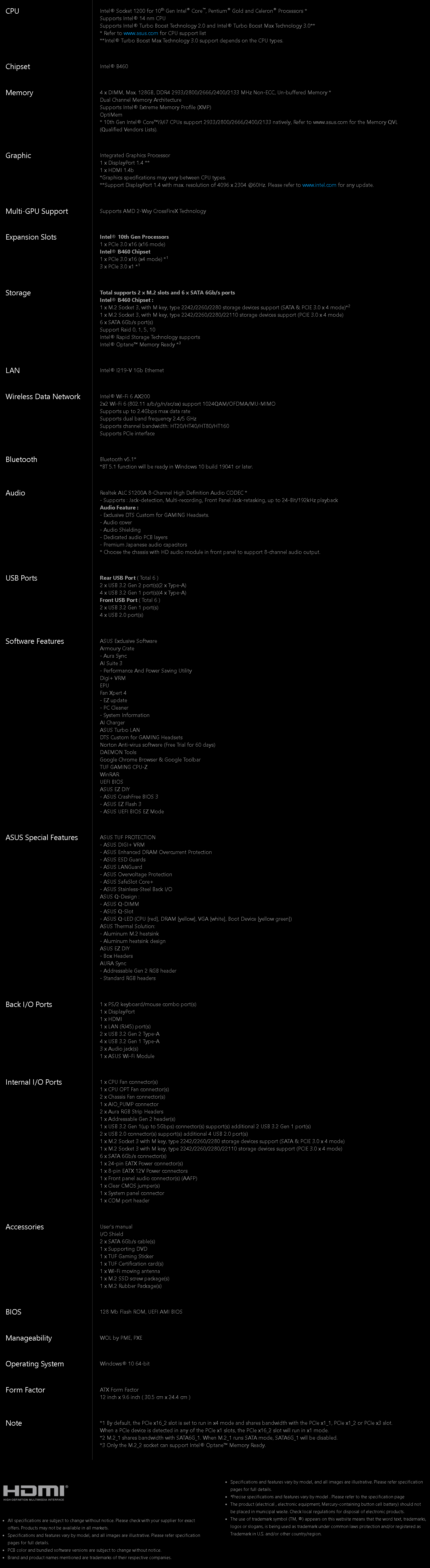 | MPN: | TUF GAMING B460-PRO (WI-FI) Link |