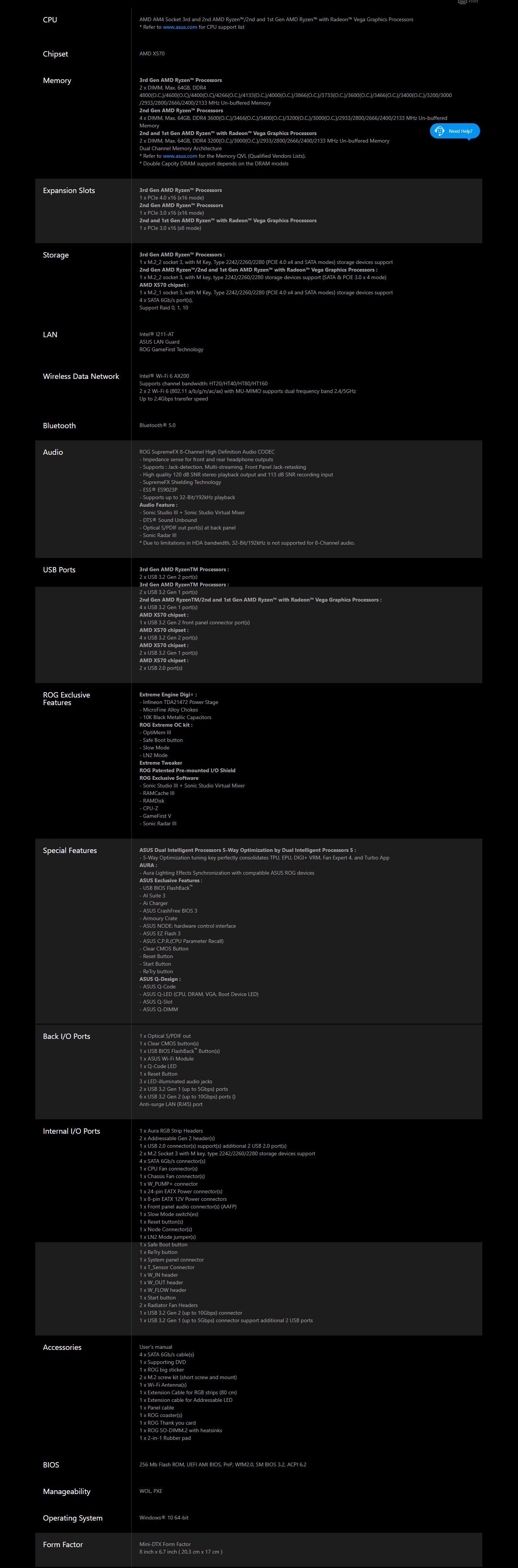 Asus Rog Crosshair Viii Impact Amd Am4 X570 Mini-Dtx Enthusiast Gaming Motherboard With So-Dimm.2 Card (Dual M.2) Wi-Fi 6 (802.11 Ax) Rog Crosshair Viii Impact