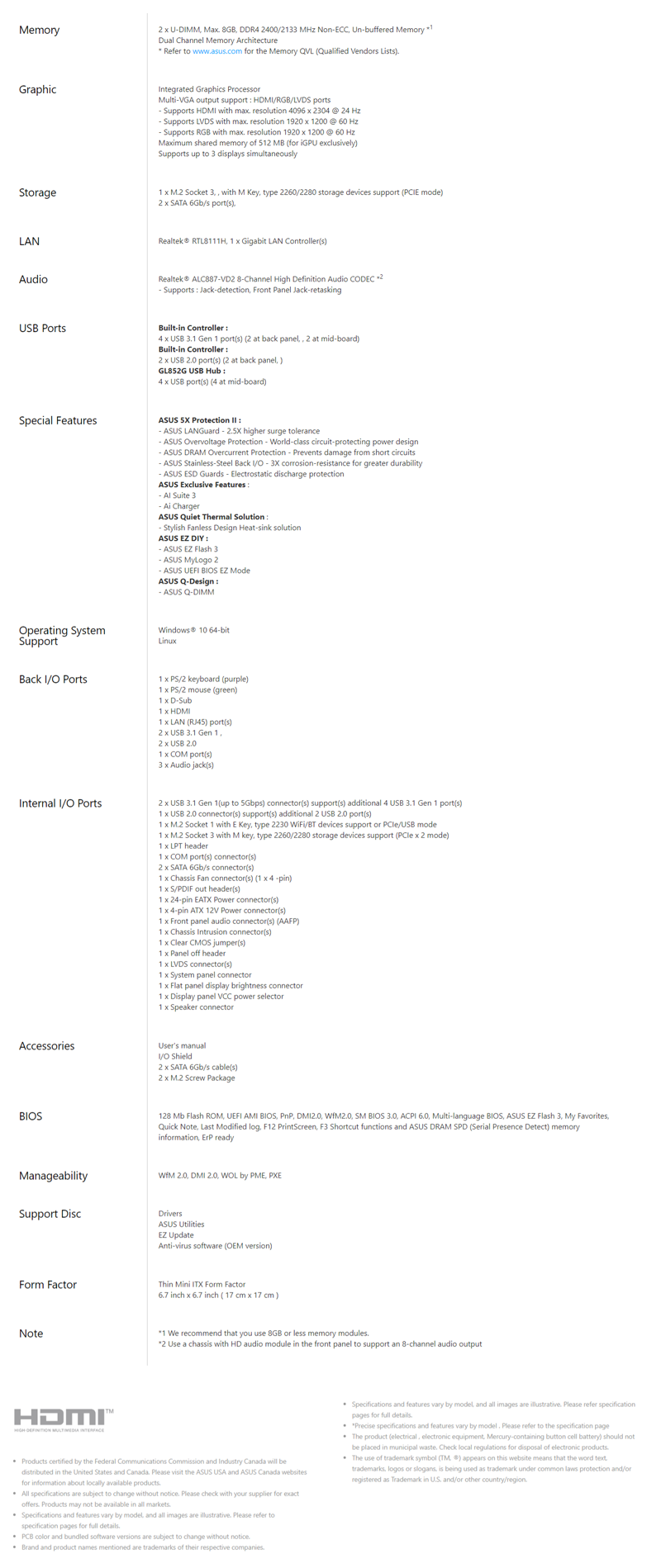 For Intel Celeron Soc J4005 2 X Ddr4 2400/ 2133 Mhz 5X Protection Ii Hdmi/ D-Sub/ Lvds Prime J4005I-C
