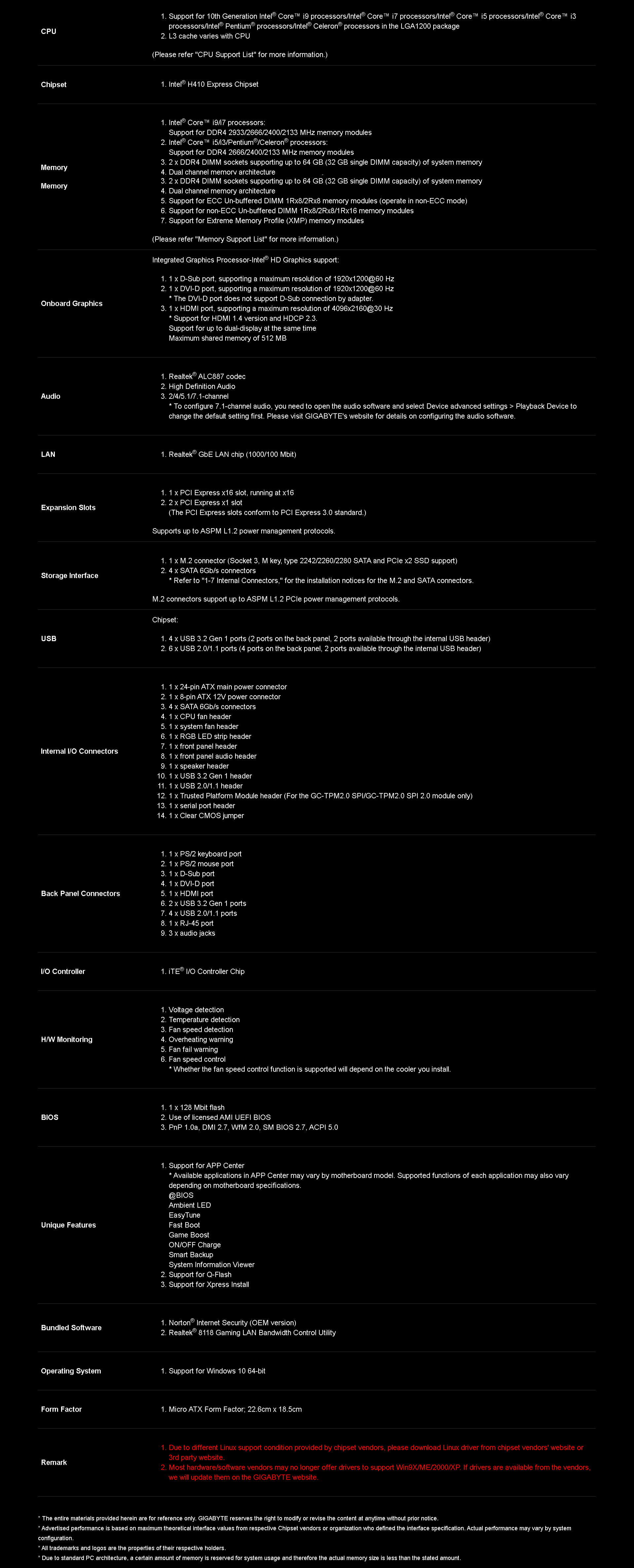 | MPN: | GA-H410M-S2H Link |