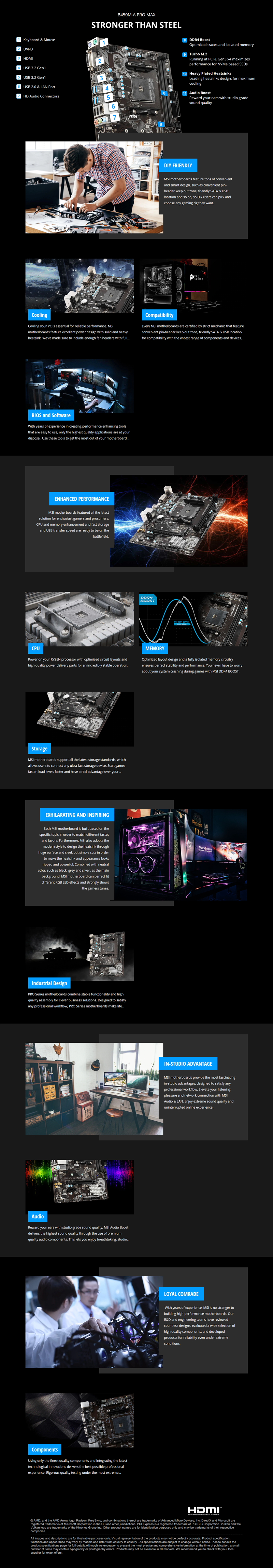 MSI B450M-A PRO MAX AMD M-ATX Motherboard - AM4 Ryzen, 2xDDR4, 4xSATAIII, M.2 B450M-A PRO MAX