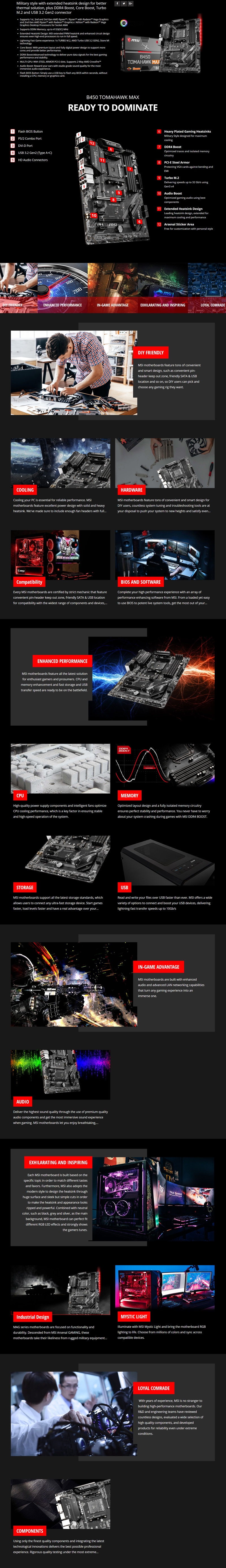 Msi B450 Tomahawk Max Am4 Ryzen Atx Motherboard 4Xddr4 5Xpcie 1Xm.2 Dvi Hdmi Raid Lan 6Xsataiii 1Xusb-C 6Xusb3.2 2Xusb3.1 B450 Tomahawk Max