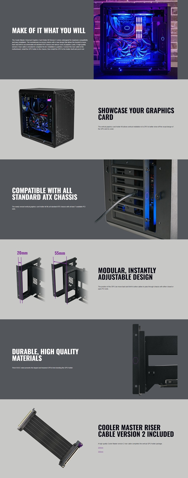 OOLERMASTER UNIVERSAL VERTICAL VGA CARD HOLDER V2 + PCIE X16 RISER CABLE (Mca-U000R-Kfvk01)