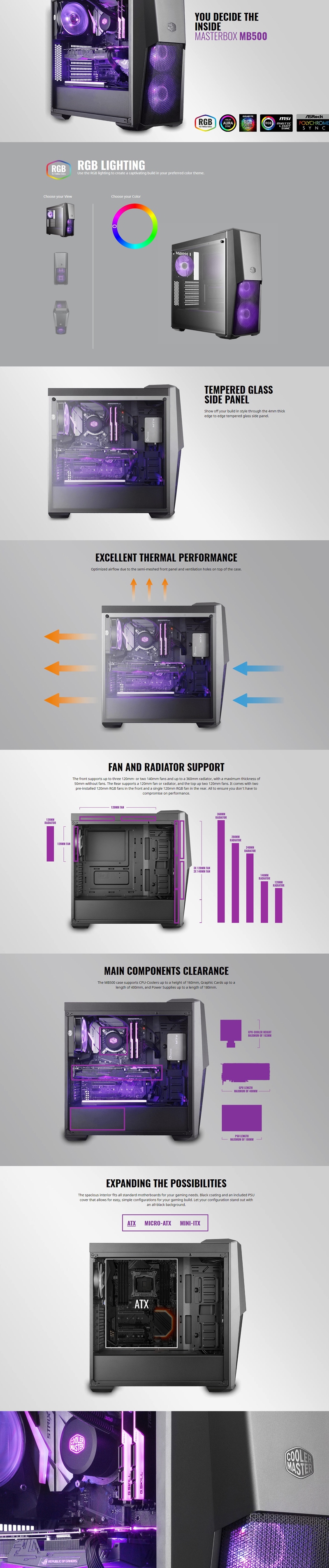 Coolermaster Masterbox Mb500 Rgb Atx Tempered Glass Window 3x Rgb Fans Mcb-b500d-kgnn-s00