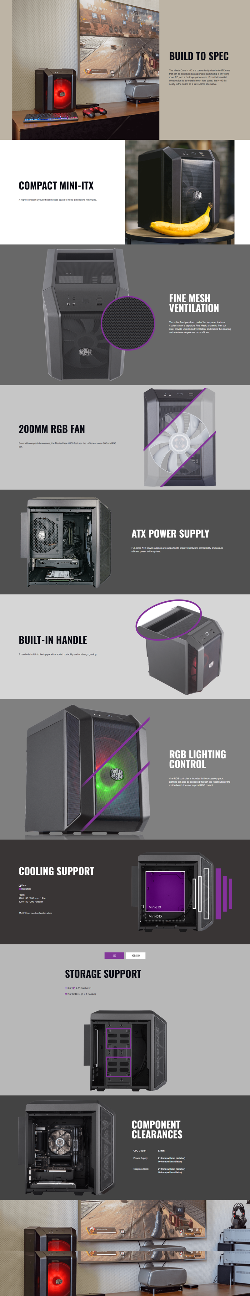 Coolermaster Mastercase H100 Mini-Itx 200Mm Rgb Fans Mesh Front Panel Atx Psu Supported Mcm-H100-Kann-S00