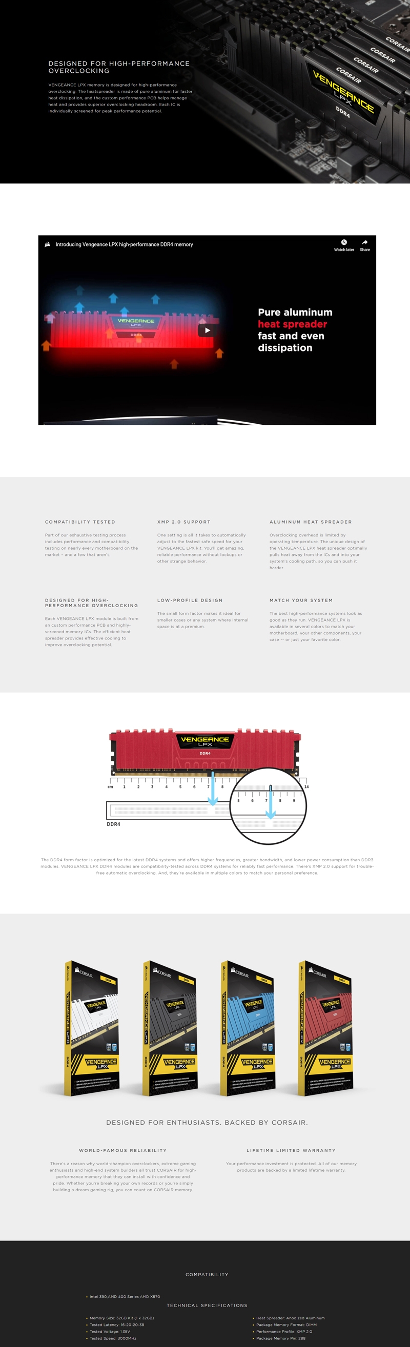 Corsair Vengeance Lpx 32Gb (1X32Gb) Ddr4 3000Mhz C16 15-15-15-36 1.2V Xmp 2.0 Desktop Gaming Memory Black Cmk32Gx4M1D3000C16