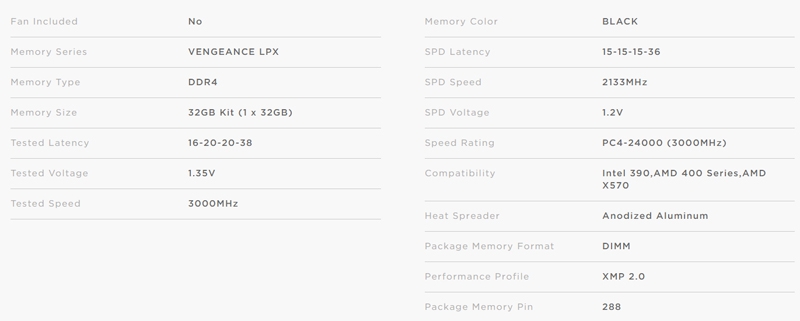 | MPN: | CMK32GX4M1D3000C16 Link |