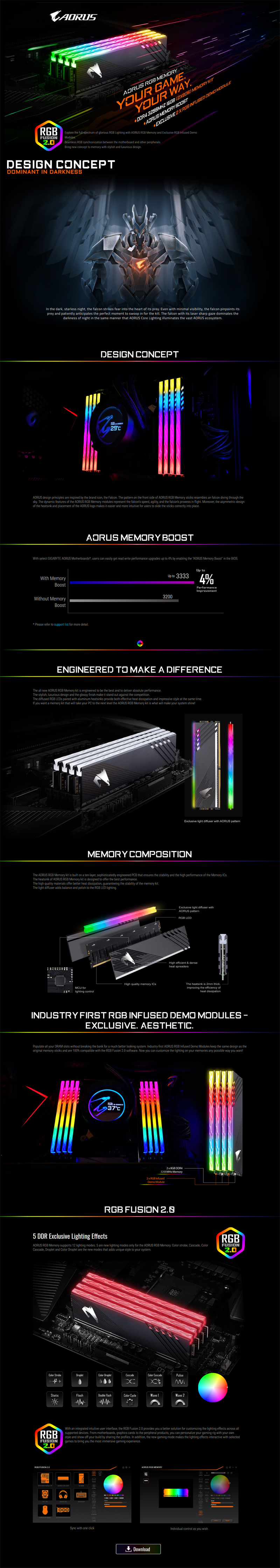 Gigabyte AORUS RGB Memory 16GB (2x8GB) DDR4 3200MHz GP-ARS16G32D