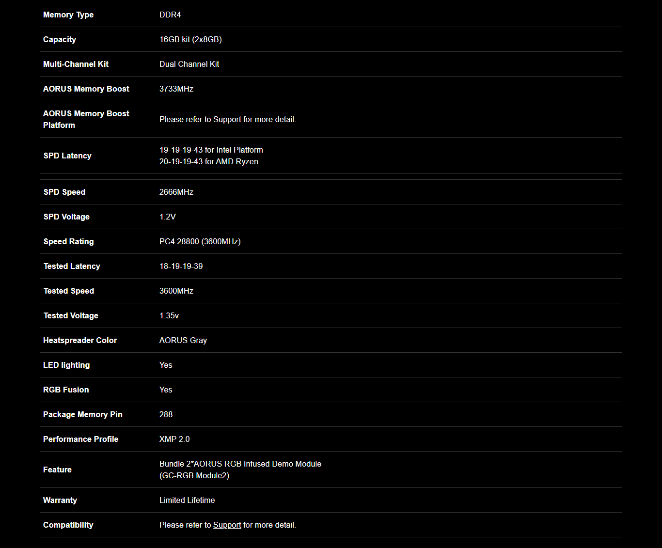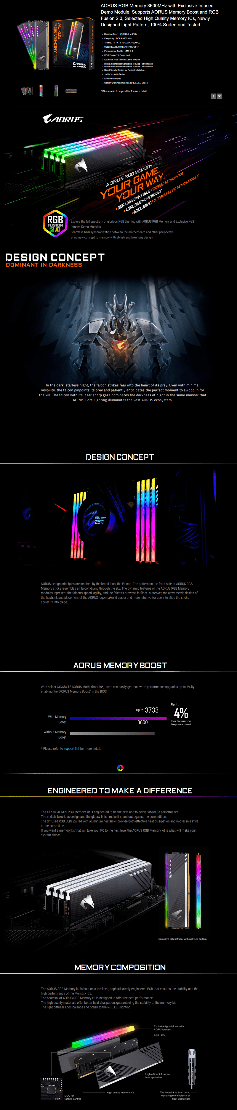 Gigabyte Gaming Memory 16Gb (2X8Gb) Ddr4 PC Desktop Ram With Demo Kit Gp-Ar36C18S8K2Hu416Rd