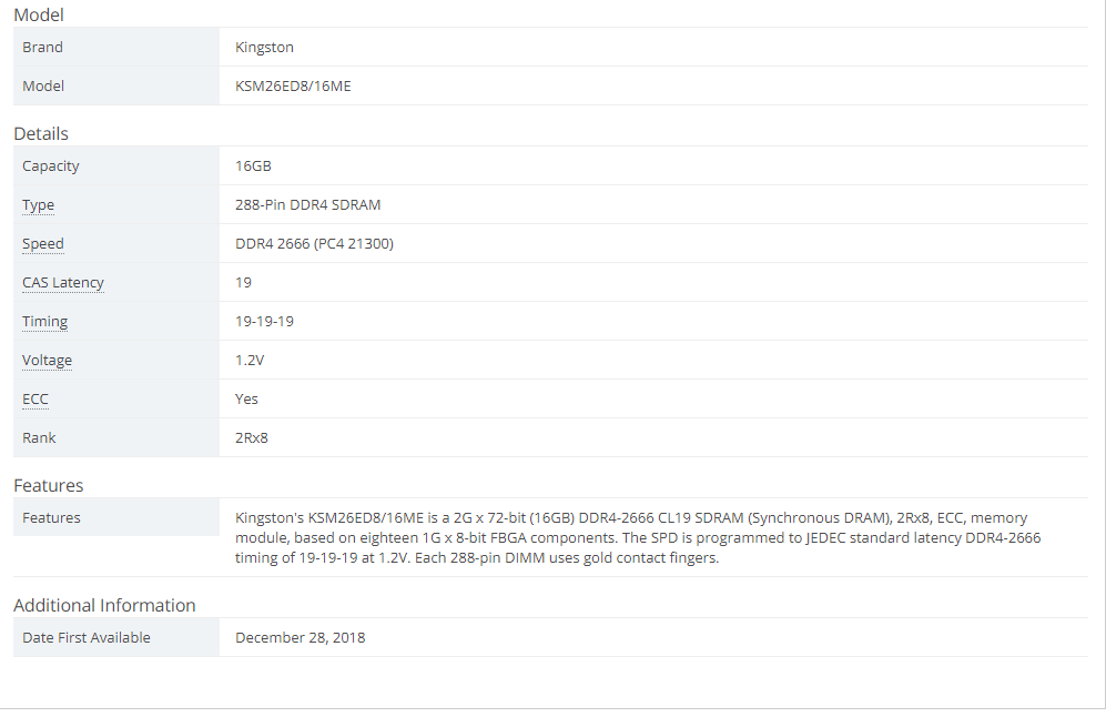 Kingston 16Gb (1X16Gb) Ddr4 Udimm 2666Mhz Server Desktop Pc Memory Ram ~Ct16G4Wfd8266 Ksm26Ed8/16Me