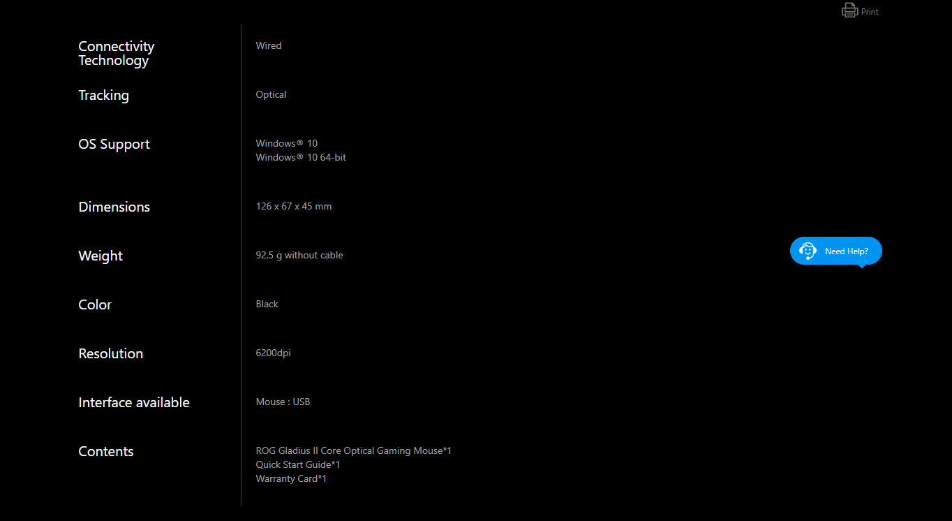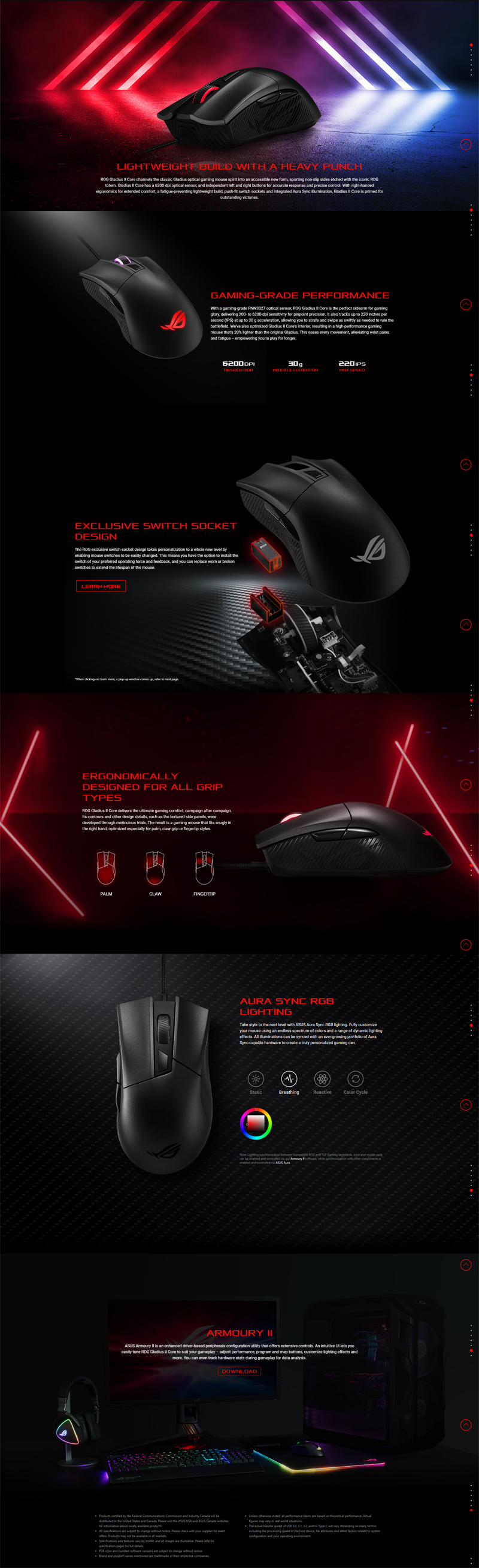 Asus Rog Gladius Ii Core P507 Gaming Mouse Aura Sync Lighting P507 Rog Gladius Ii Core