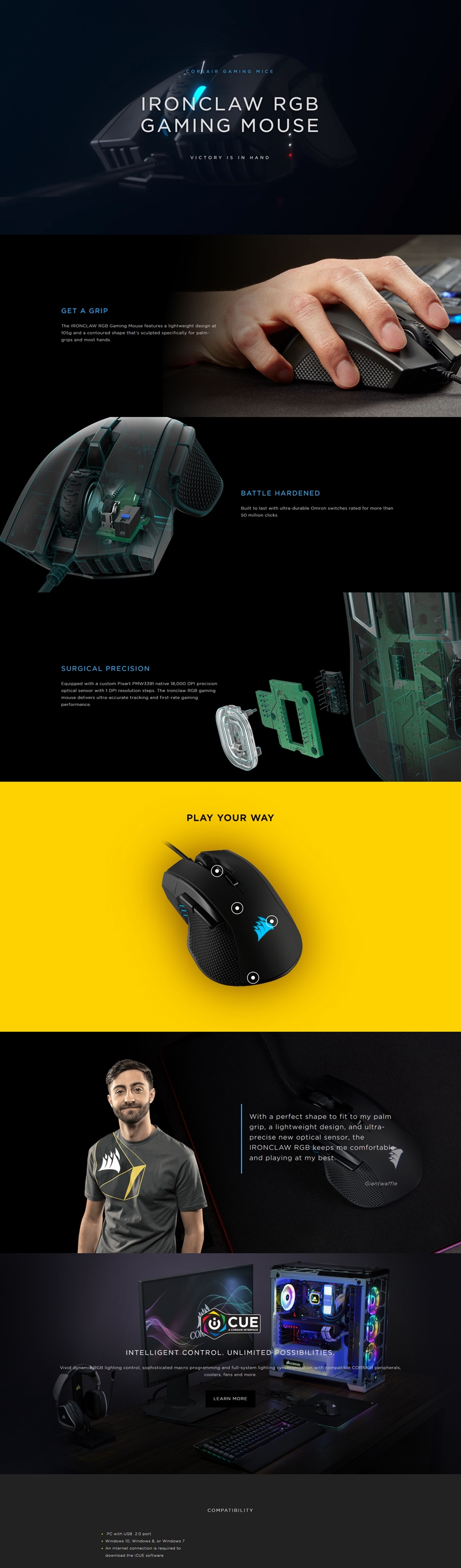Corsair Ironclaw Rgb Fps/ Moba 18 000 Dpi Gaming Mouse Ch-9307011-Ap