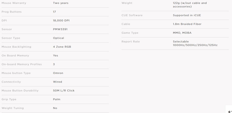 Corsair Scimitar Rgb Elite Black Gaming Mice 17 Programmable Buttons 18 000 Dpi Ch-9304211-Ap