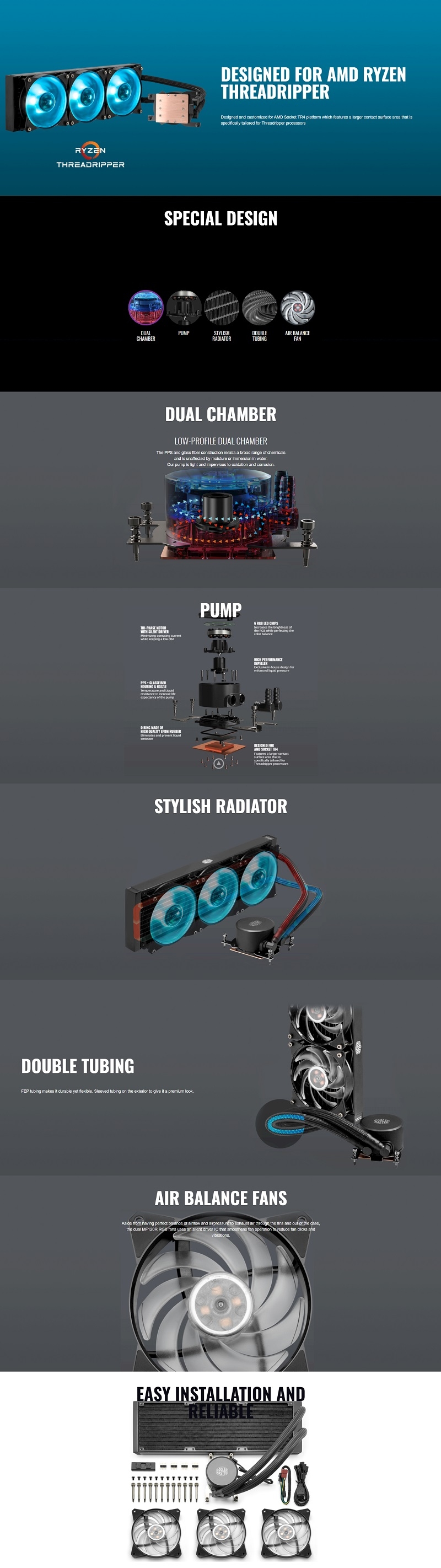 | Product Description | Cooler Master MasterLiquid ML360R RGB - TR4 Edition - processor liquid cooling system |