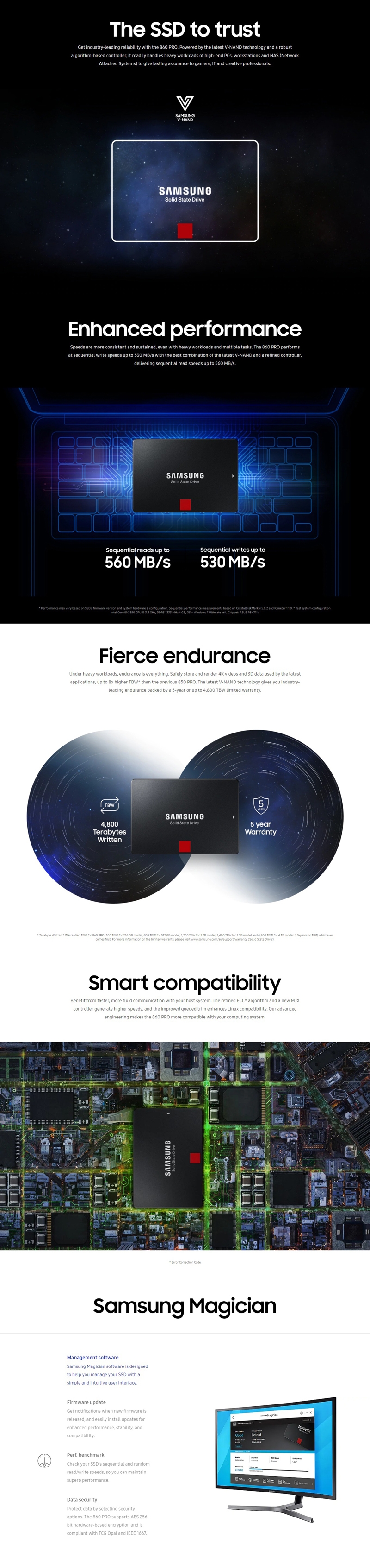 Samsung 860 Pro 2Tb V-Nand 2.5" 7Mm Sata Iii 6Gb/ S R/ W(Max) 560Mb/ S/ 530Mb/ S Mz-76P2T0Bw