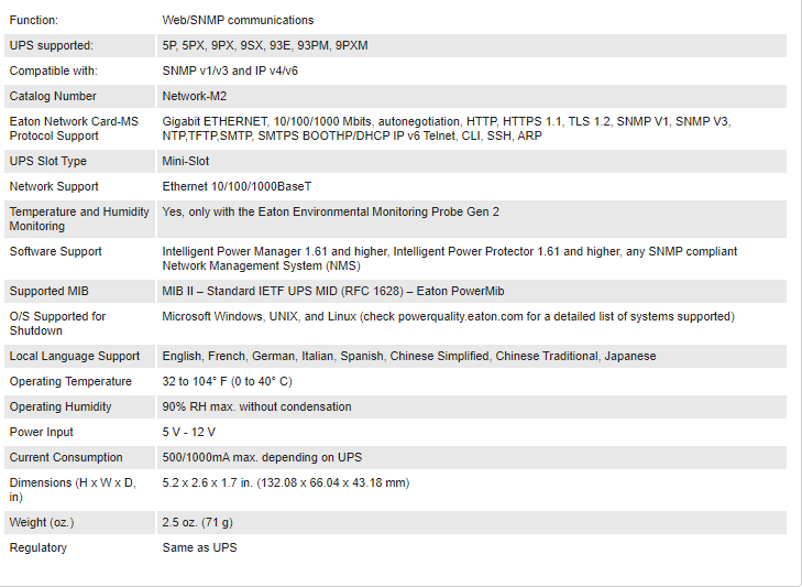 Eaton Gigabit Network Card SNMP/Web Adaptor- Currently Support 5P, 5PX, 9PX and 9SX only