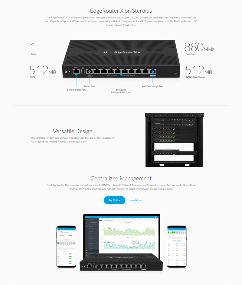 Ubiquiti Edgerouter 10X - 10-Port Gigabit Router With Poe Flexibility Er-10X-Eu