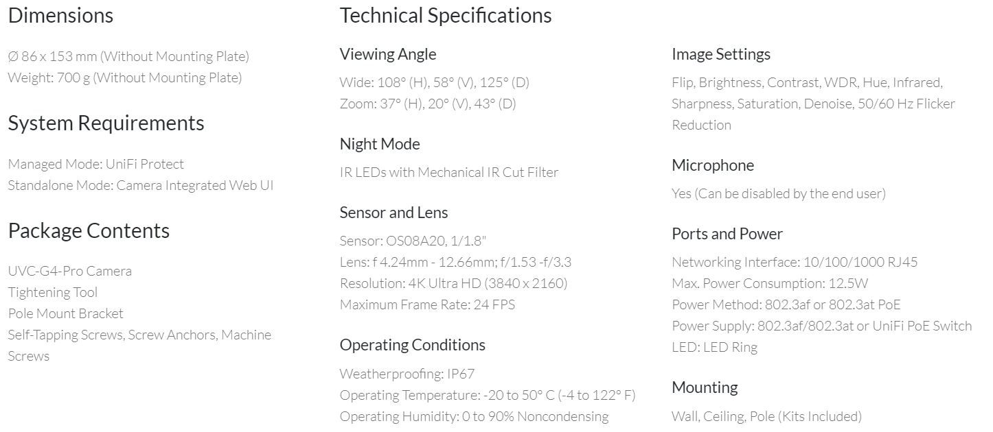 Ubiquiti Unifi Video Camera Uvc-G4-Pro Infrared Ir 4K Video- 802.3Af Is Embedded - 3 Pack Uvc-G4-Pro-3