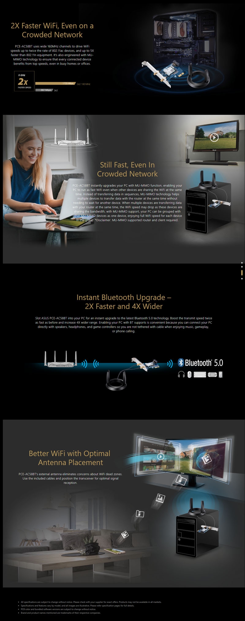 Asus Pce-Ac58Bt Ac2100 Dual-Band Pcie 160Mhz Wi-Fi Adapter Pce-Ac58Bt