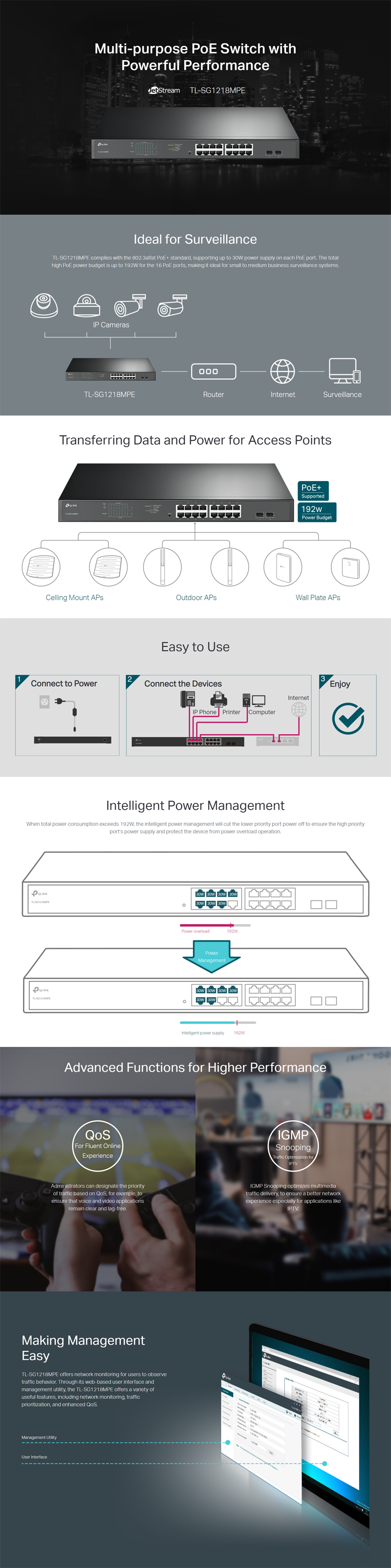 Tp-Link Tl-Sg1218Mpe Jetstream 16-Port Gigabit Easy Smart Poe/Poe+ Switch Tl-Sg1218Mpe