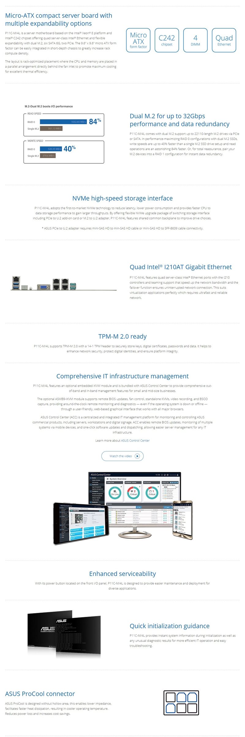 Asus P11C-M/ 4L Xeon E M-Atx Server Mb 4Lan P11C-M/4L