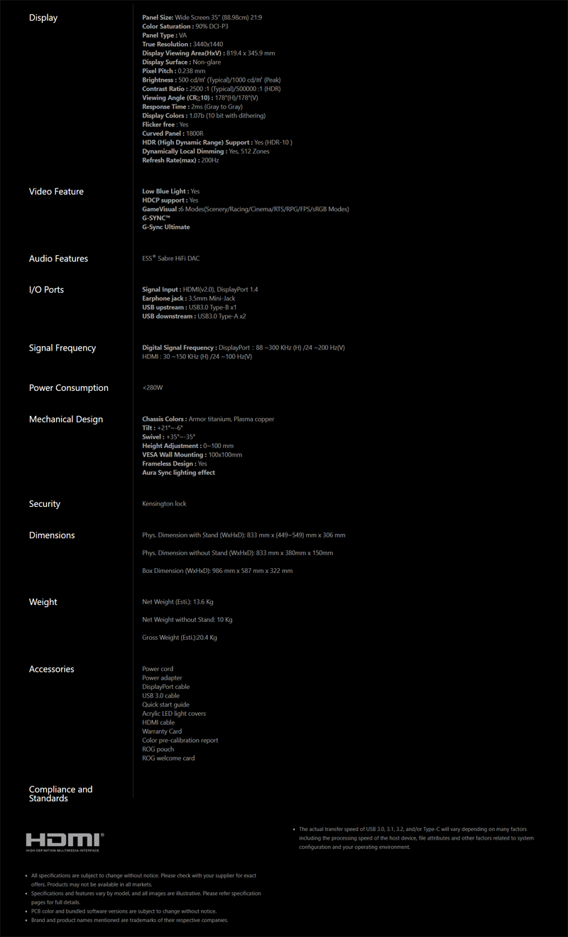 Asus ROG Swift PG35VQ Ultra-Wide HDR Gaming Monitor Pg35Vq
