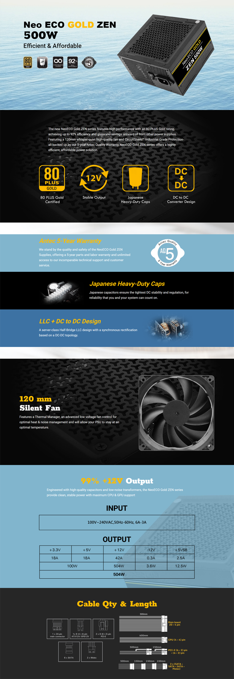 Antec Neo Eco Zen 500W Psu 80+ Gold Ne500G Zen