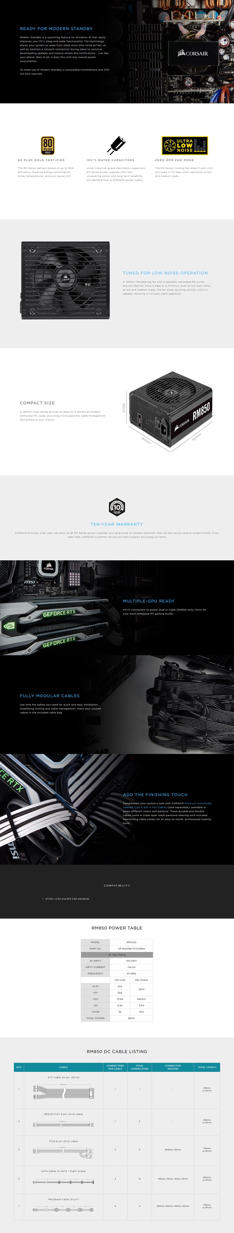 Corsair 850W Rm 80+ Gold Fully Modular 135Mm Fan Atx Psu 10 Years Warranty Cp-9020196-Au