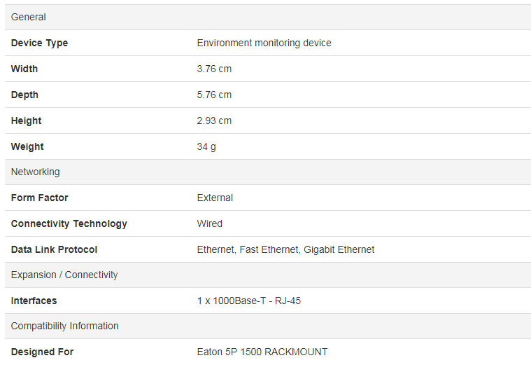 Eaton Environmental Monitoring Probe For Gigabit Network Card Empdt1H1C2