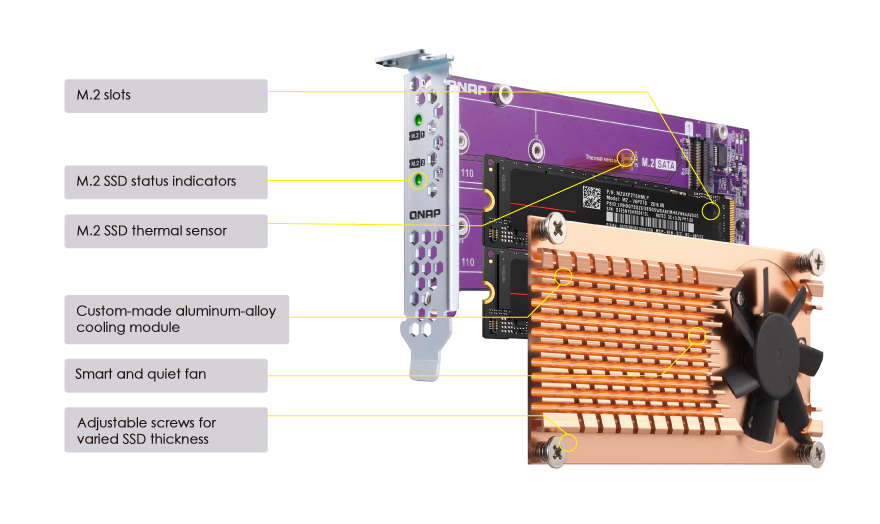 QM2 boosts performance by adding M.2 SSDs. It doesn’t occupy any 3.5-inch drive bays, allowing you to maximize both your storage capacity and performance.