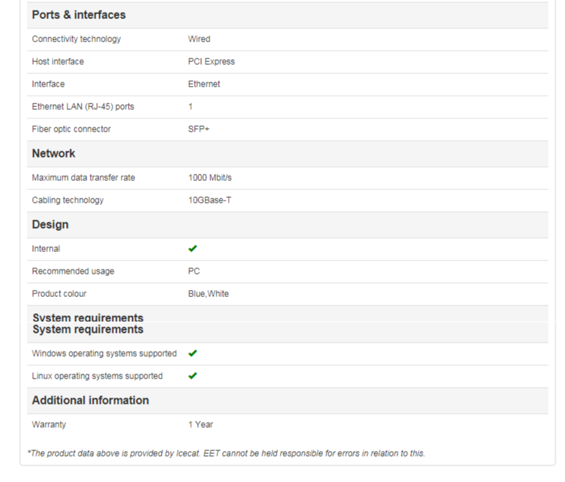 Specifications Mfr Part Number: QXG-10G2SF-CX4 Description: dual-port 10 GbE network expansion card controller: Mellanox ConnectX-4 LX connector: SFP+ interface: PCIe 3.0 x 8 transmission rates: 10Gbps supported operating systems: QTS; Windows (driver required); Linux (driver required) supported QNAP NAS: models with PCIe slots) (1 free slot required) bracket: low-profile bracket pre-installed; full-height and specialized (for selected QNAP NAS) brackets are bundled port and cable: SFP+ DAC cable (1.5M, 3M, 5M) or SFP+ optic transceiver