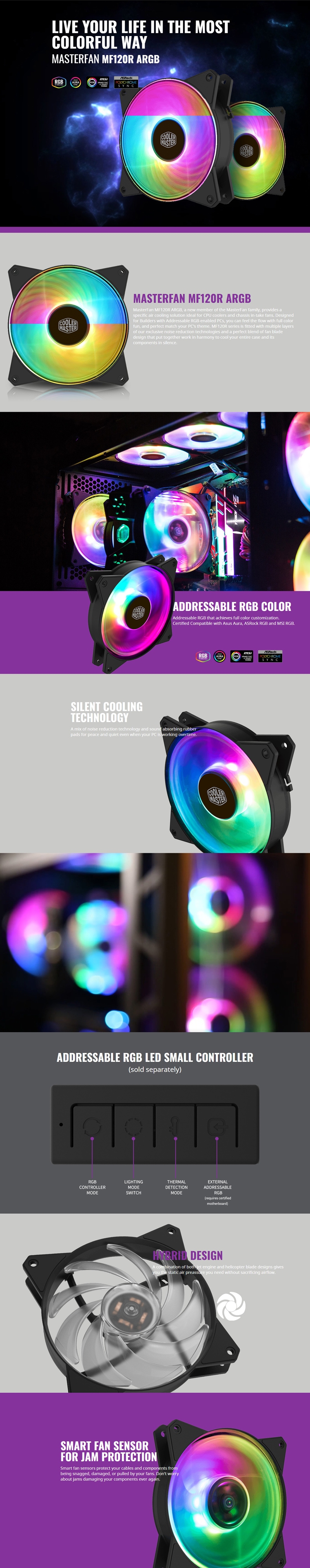 Coolermaster Masterfan 120mm Addressable Rgb Fan Support Cm Plus Software Control R4-120r-20pc-r1
