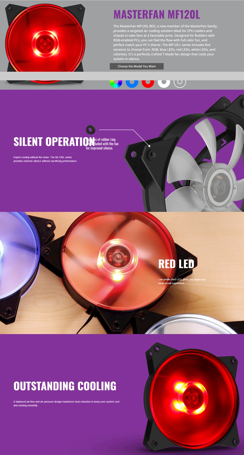 Coolermaster Masterfan Lite Mf120L 120Mm Red Led Fan 1200 Rpm R4-C1Ds-12Fr-R1