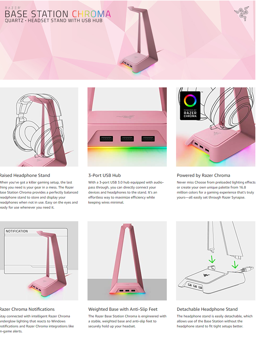Razer Base Station Chroma - Chroma Enabled Headset Stand with USB Hub - Quartz - FRML Packaging