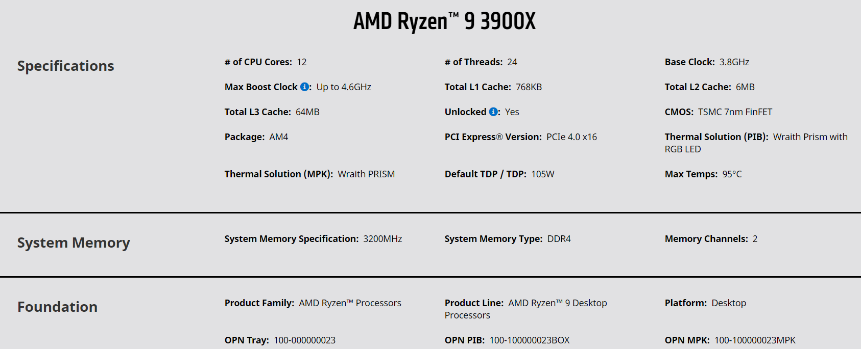 | MPN: | Ryzen 9 3900X Link |