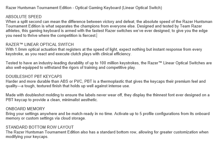 Razer Huntsman Tournament Edition - Optical Gaming Keyboard - FRML Pkg (Linear Optical Switch)