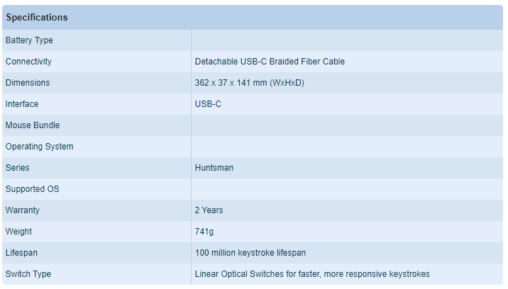 Razer Huntsman Tournament Edition - Optical Gaming Keyboard - Frml Pkg (Linear Optical Switch) Rz03-03080100-R3M1