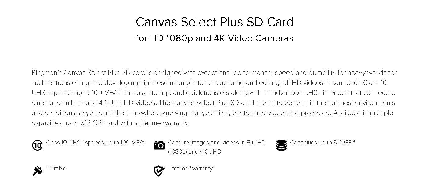 Kingston 32GB Canvas Select Plus SD card Sds2/32Gb
