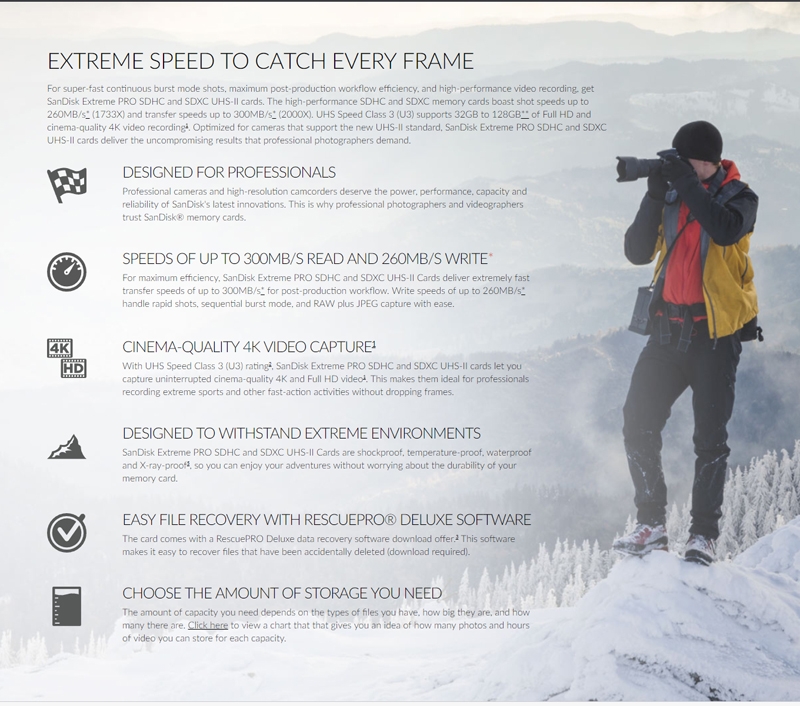 Sandisk Extreme Pro Sdxc Sdxpk 128Gb U3 C10 Uhs-Ii 300Mb/ S R 260Mb/ S W 4X6 Lifetime Limited Sdsdxpk-128G-Gn4In