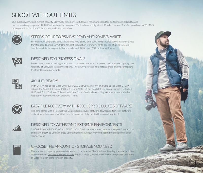 Sandisk Extreme Pro Sdxc Sdxxy 64Gb V30 U3 C10 Uhs-I 170Mb/ S R 90Mb/ S W 4X6 Lifetime Limited Sdsdxxy-064G-Gn4In
