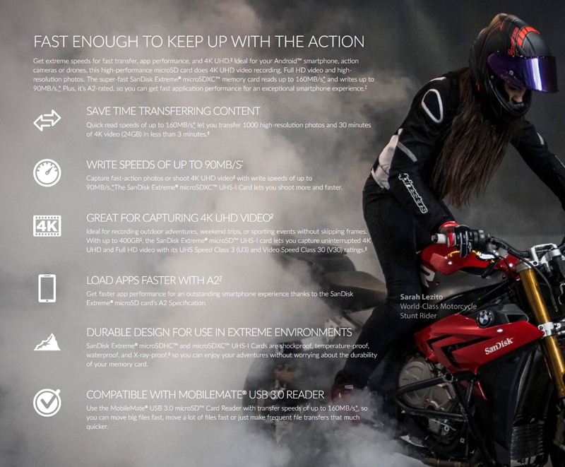 Sandisk Extreme Microsdxc V30 U3 C10 A2 Uhs-i 160mb/ S R 90mb/ Sw 4x6 Sdadaptor Lifetimelimited Sdsqxa1-256g-gn6ma
