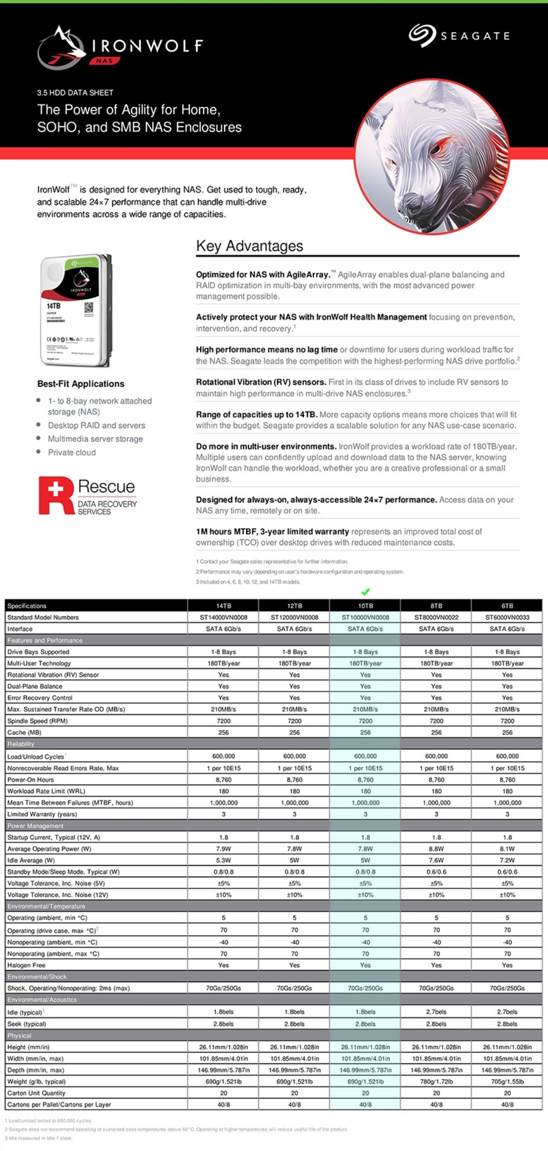 Seagate Ironwolf Nas Internal 3.5" Sata Drive 10Tb 6Gb/ S 7200Rpmb St10000Vn0008