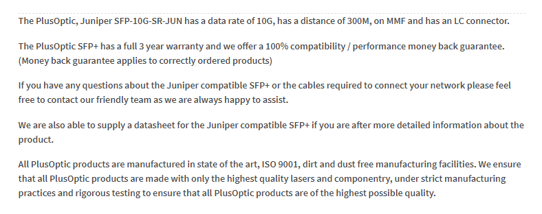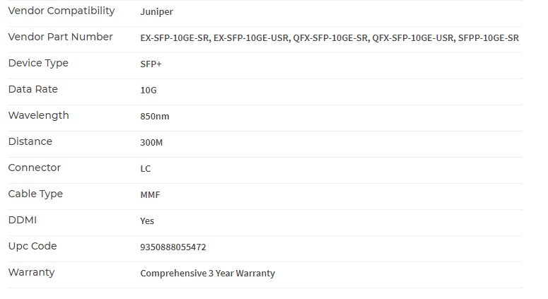 | MPN: | SFP.10G.SR.JUN Link |